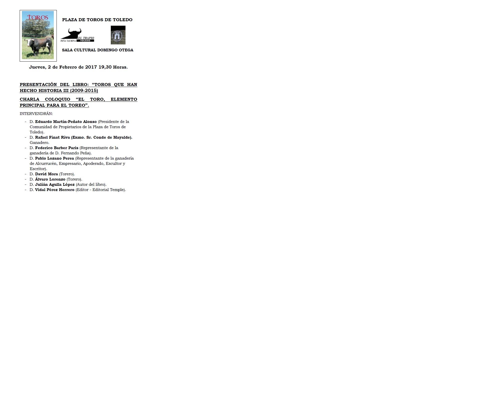CHARLA COLOQUIO "EL TORO, ELEMENTO PRINCIPAL PARA EL TOREO"